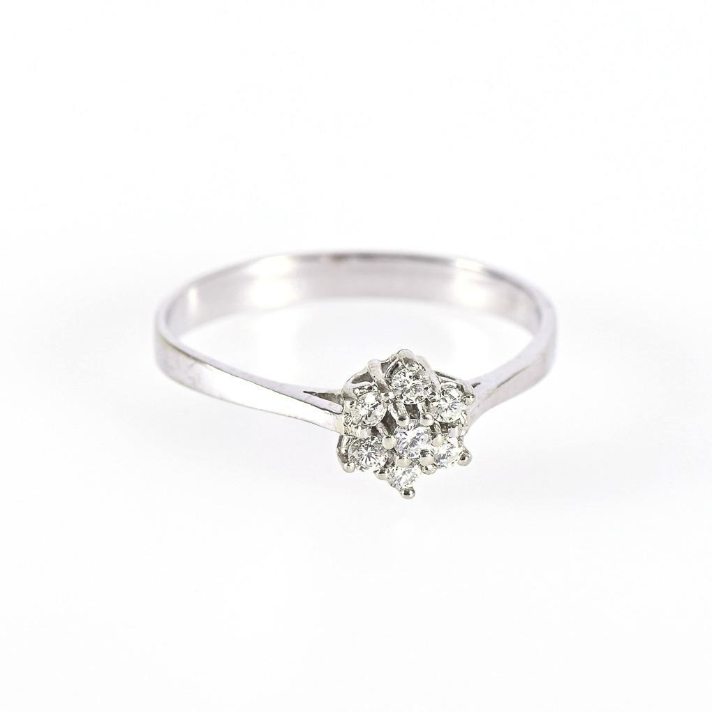 7 kleine, chatongefasste Brillanten, zwischen schmaler Schiene.