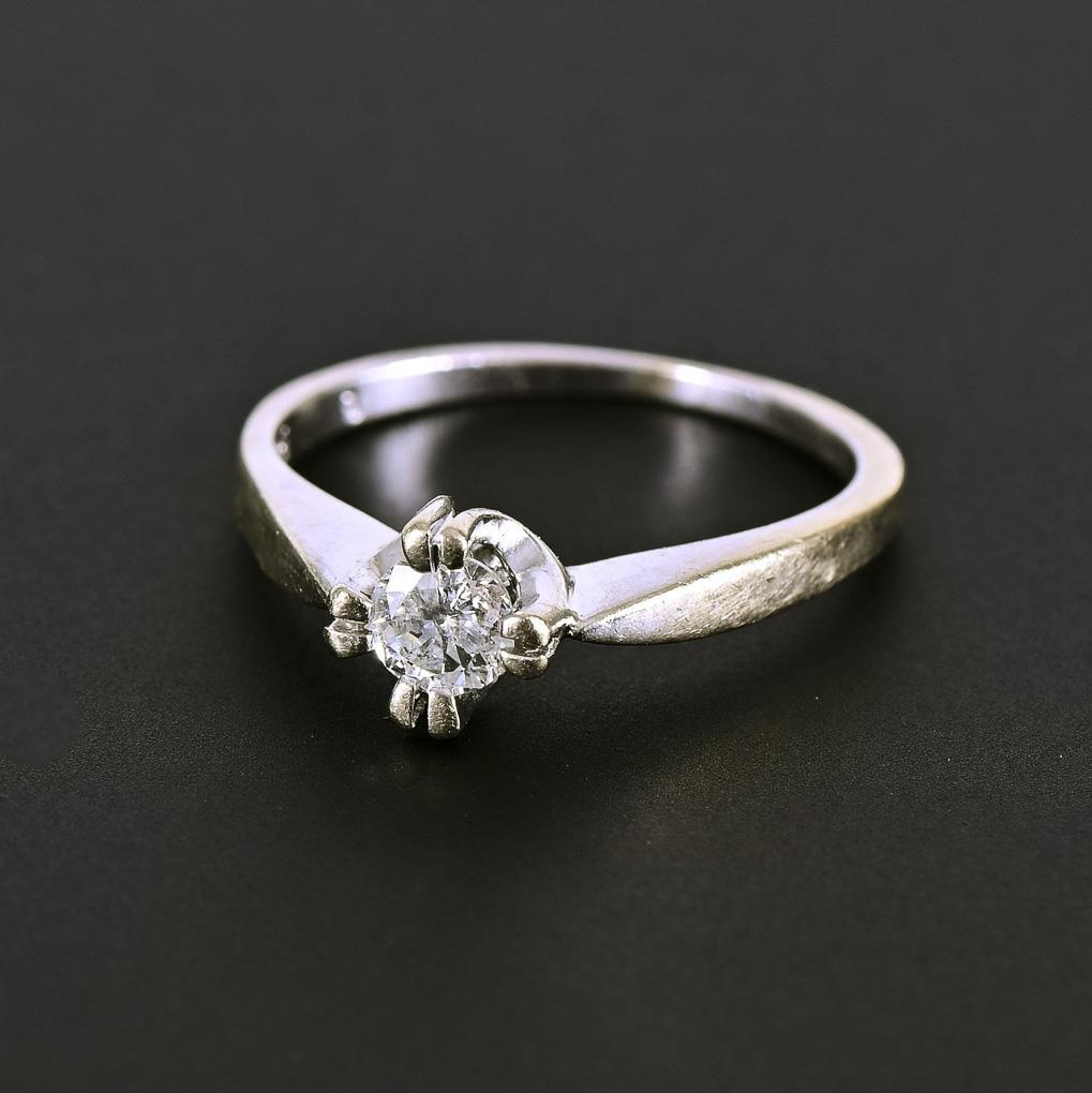 Weißgold 585 gestempelt. Ringgröße 57. Stein Ø ca. 4,8 mm/Weiß/PI. 3,0 g.