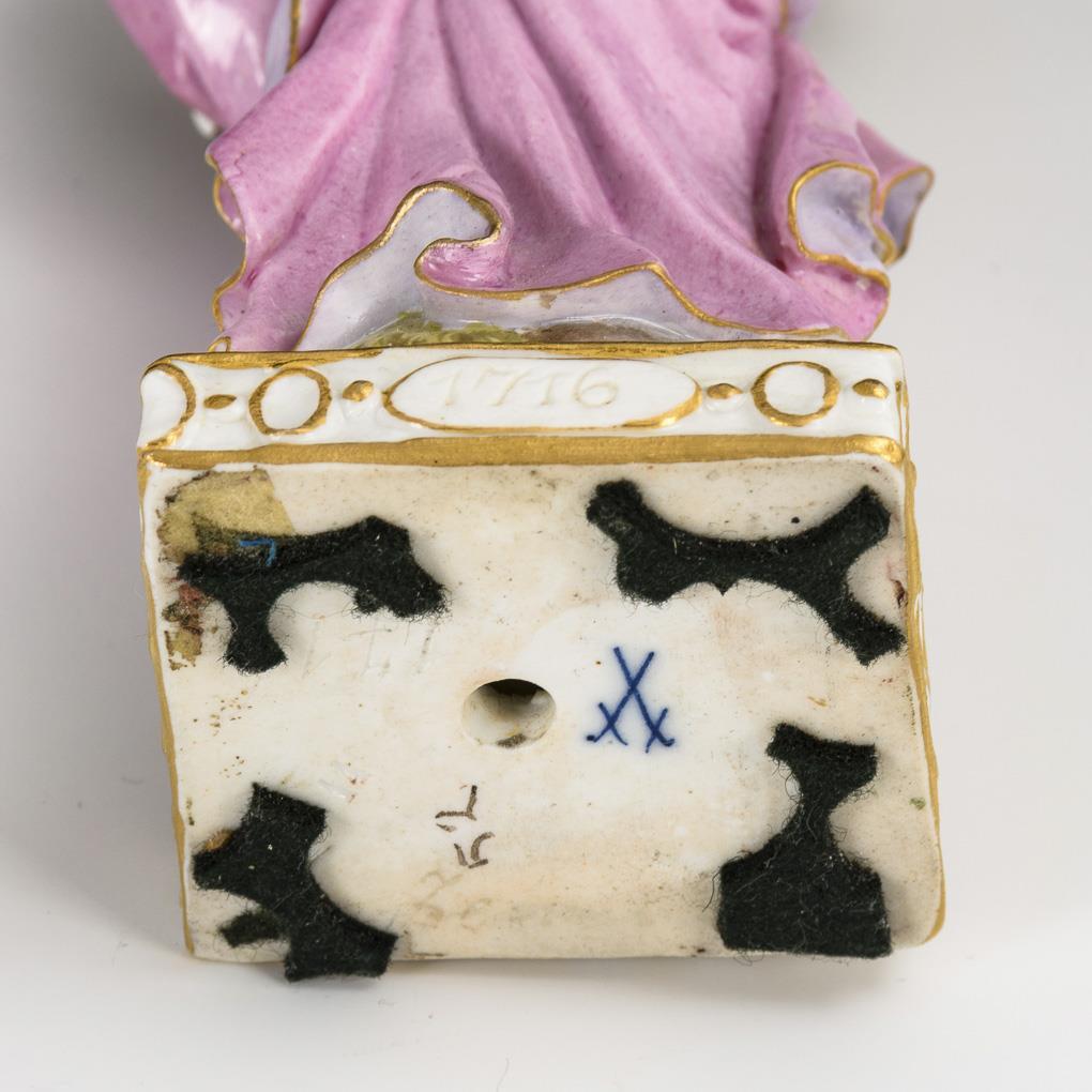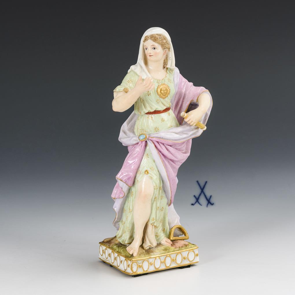 Auf einem Quadratsockel stehende, antikisch gekleidete Frau mit Sonnenzeichen und Attributen der Astronomie. Brandriss in 1 Zeh, Fernrohr und beide Hände restauriert, Fernrohr bestoßen.
