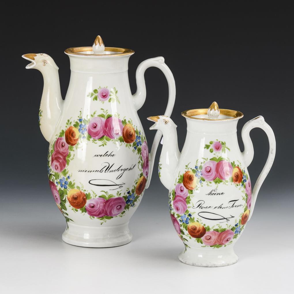 2 Biedermeier-Kaffeekannen. Wallendorf.