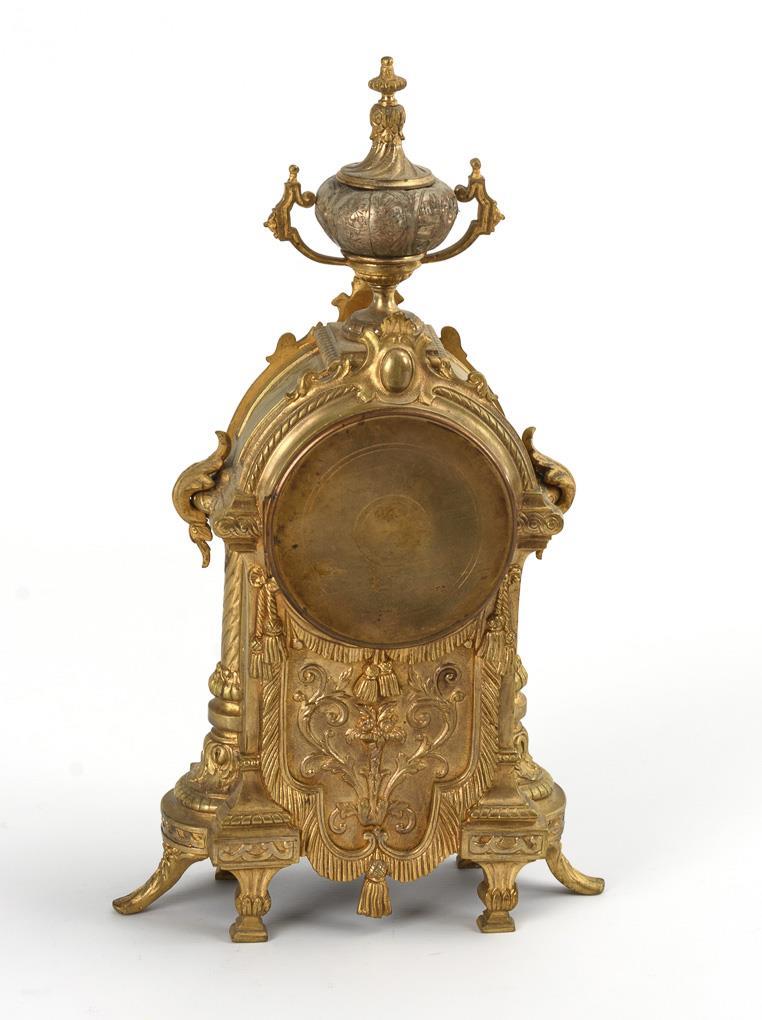 Bronze, Kupfer versilbert. Uhr 38 x 21,5 x 10,5 cm, Gesamt H 42 cm.