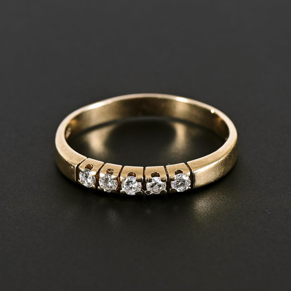5 kleine, chatongefasste Brillanten zwischen schmaler Schiene.