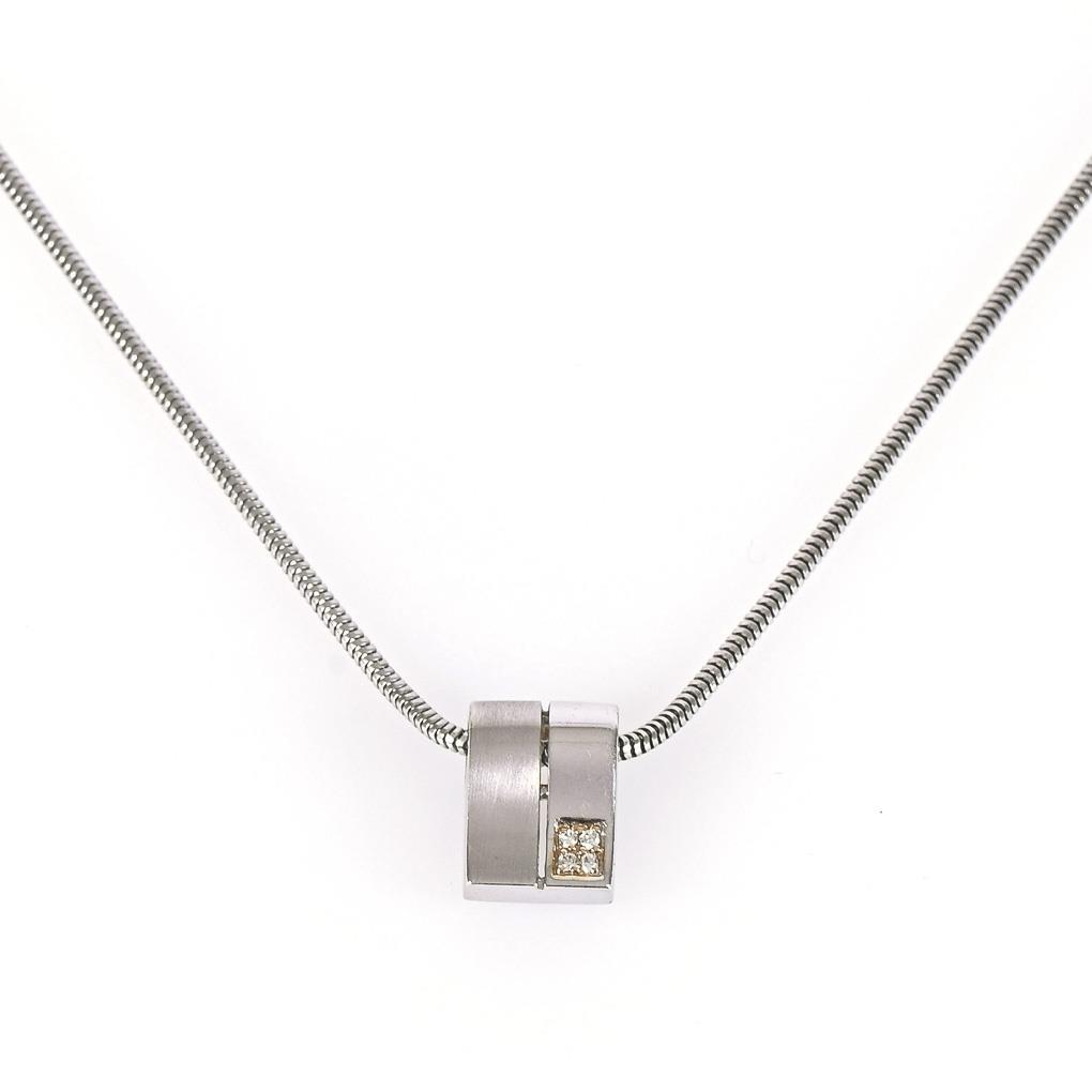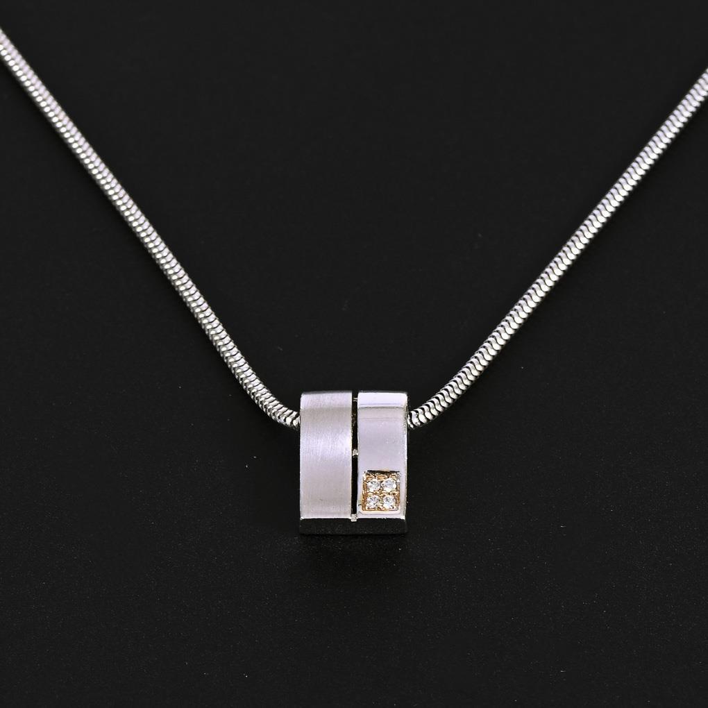 Anhänger mit 4 kleinen, eingelassenen Diamanten, an Schlangenkette mit Karabinerschließe.