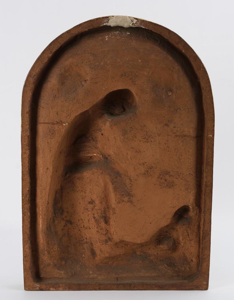 Durabit (Gipsmasse), polychrom lackiert. Anfang 20. Jh. 83 x 58 x 10 cm.
