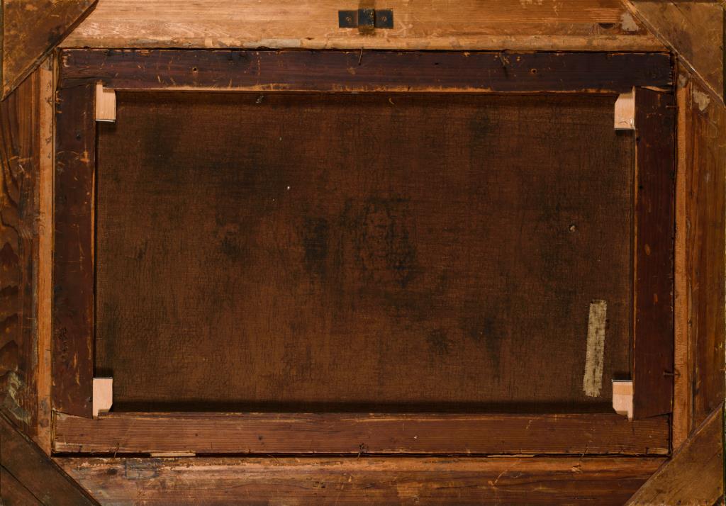 Preußische Soldaten beim Verhör eines Feindes vor einer Schenke, darunter Kaiser Friedrich III., hier noch als Kronprinz Friedrich Wilhelm III.. Eine restaurierte Stelle mit Hinterklebung.