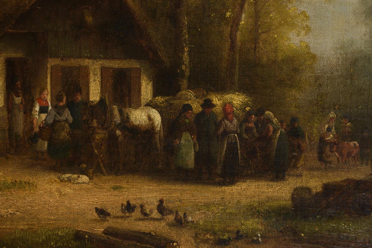 Dorfszene mit Heuwagen