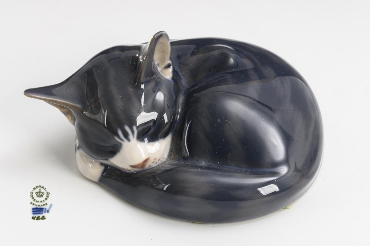 Jugendstil-Entwurf eines zusammengerollten Kätzchens. Jüngere Ausformung.