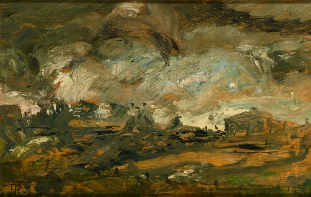 Abstrakte Landschaft mit Sturmwolken und Regen.