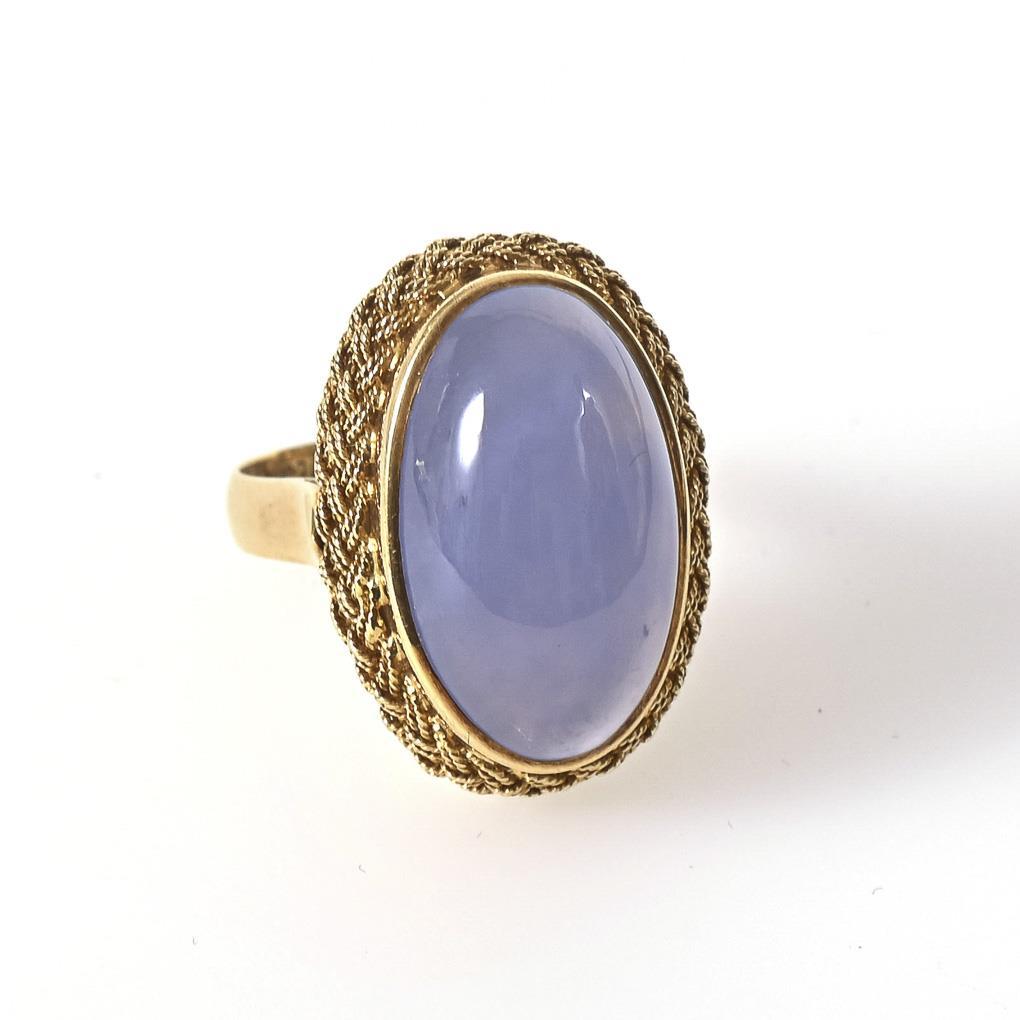 Zargengefasster Cabochon in gekordeltem Rahmen, zwischen mittlerer Schiene.