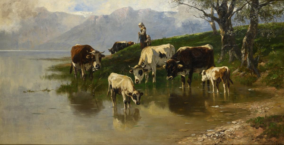 Sie befinden sich hier:   Startseite Kategorien Gemälde Hirtin mit Kühen am Bergsee
