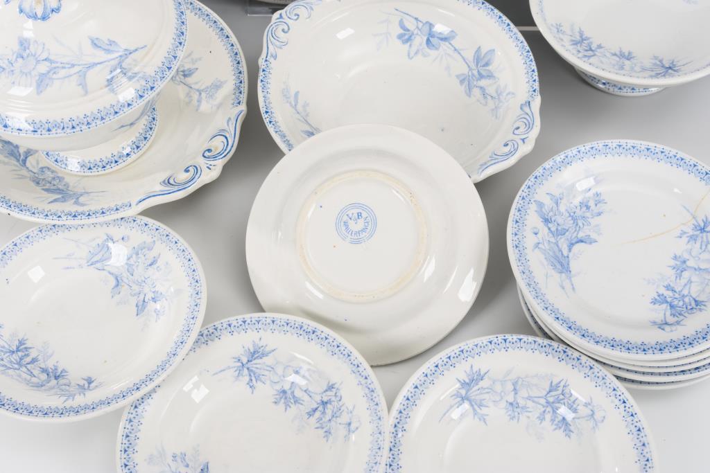 16 Teile. Verschiedene Schüsseln und Platten, 1 Sauciere sowie 5 Speise- und 5 Suppenteller . Mehrere kleine Bestoßungen, 1 Teller mit Haarriss.