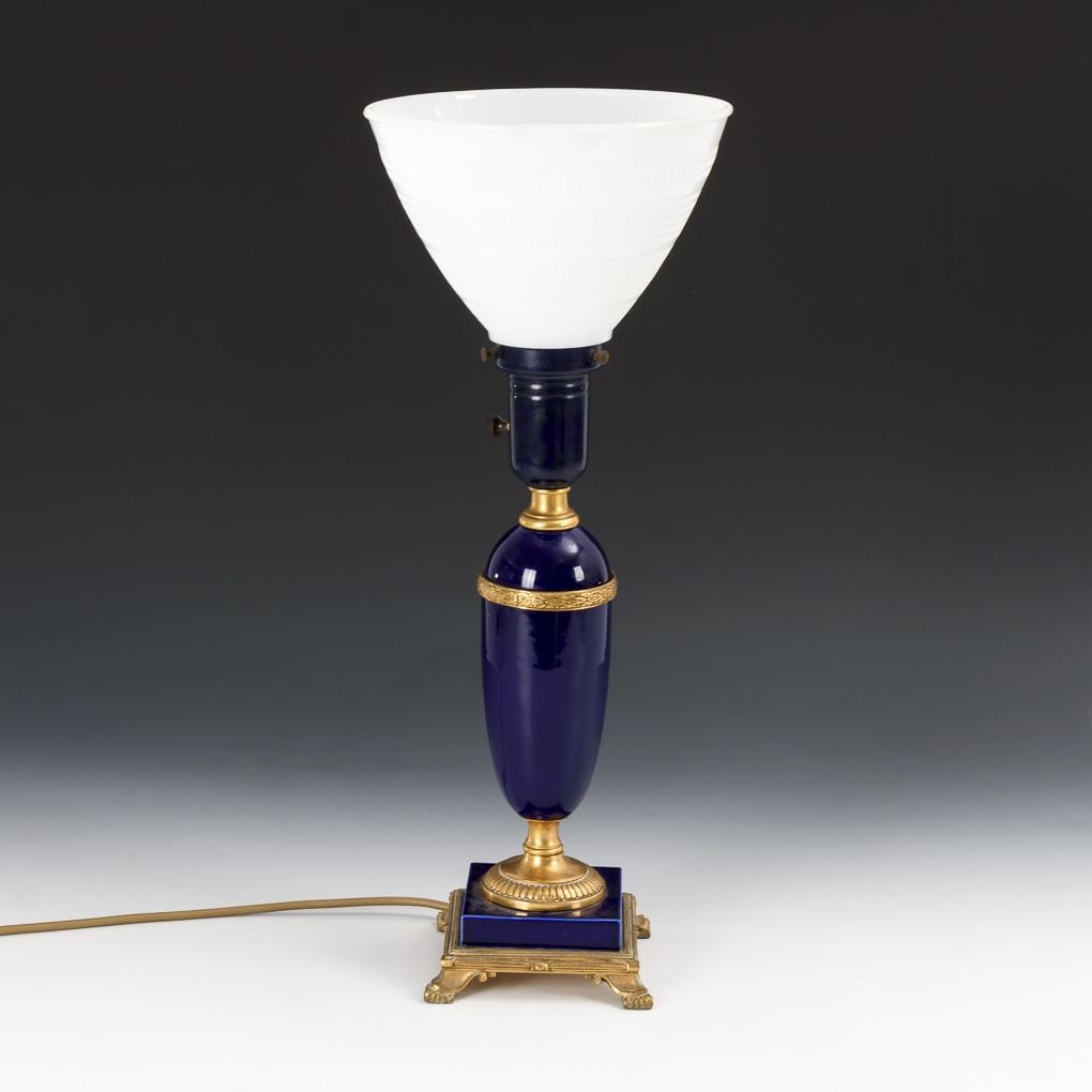 Tischlampe mit blauem Keramikschaft. Artistic Lamp New York.