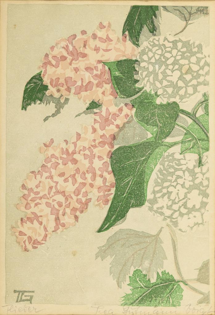 Farbholzschnitt auf Japanpapier. Bleistiftsignatur, im Druck monogrammiert "TG".