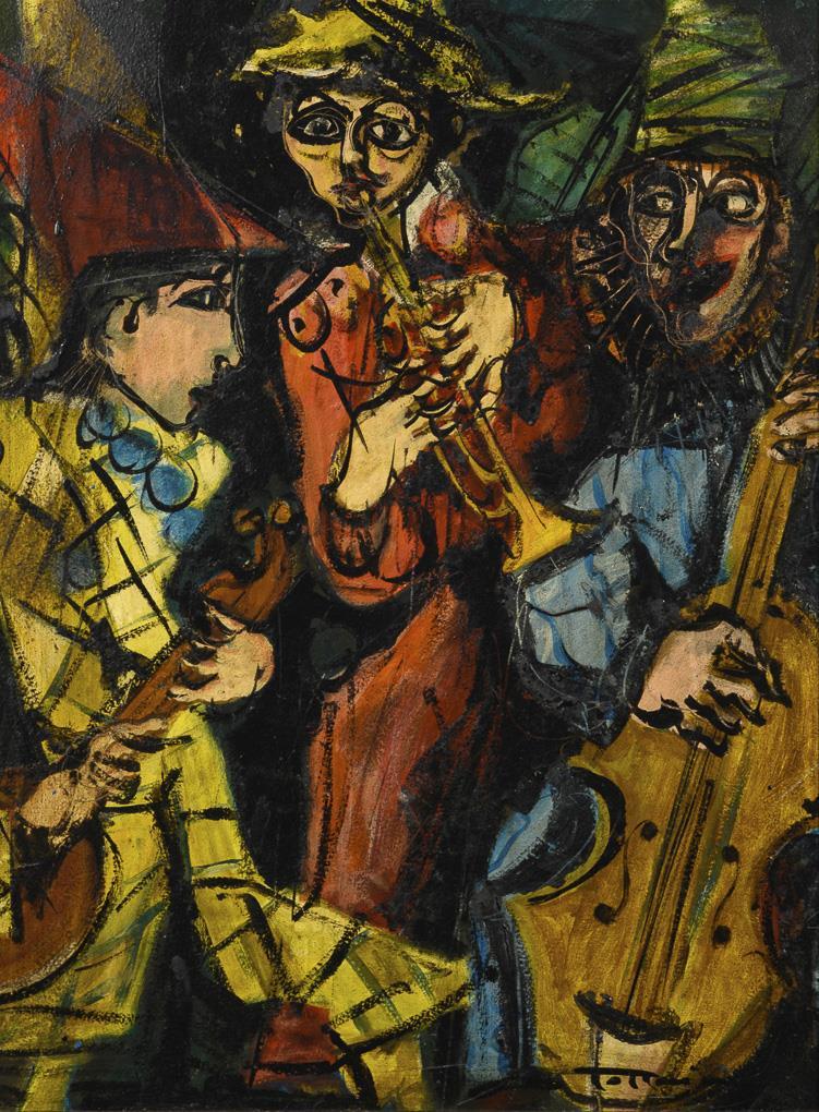 Bunt gekleidete Musikanten beim ausgelassenen Spiel.