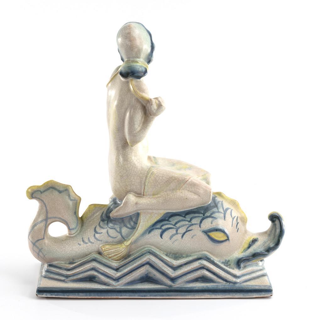 Art-déco-Figur: Delfinreiterin. Kieler Kunstkeramik AG.