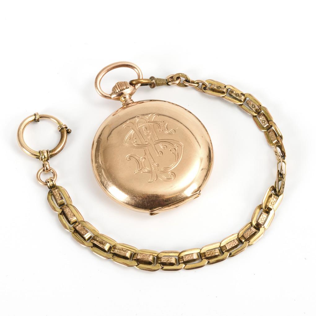 Goldene Savonnette an Doublée-Gliederkette.