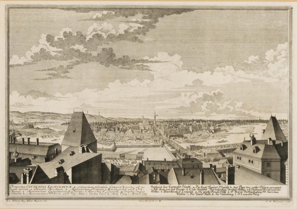 Perspektivische Ansicht der Wiener Leopoldstadt mit Legende.