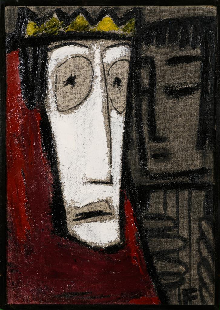 Öl/Leinwand.Rechts unten monogrammiert, verso Schriftzug "So oft nun der böse Geist über Saul kam, spielte David auf der Harfe".2. H. 20. Jh.