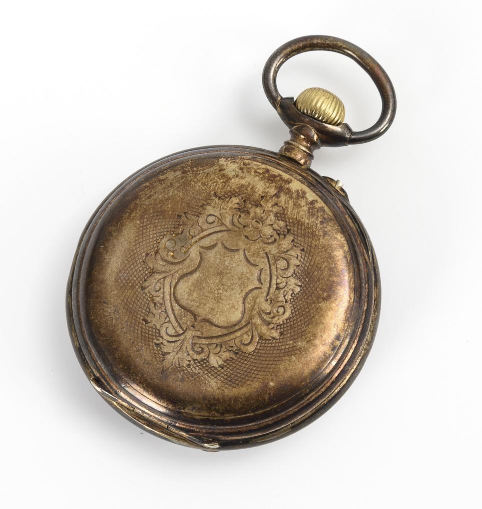 Guillochiertes Lépine-Gehäuse mit leerer Wappenreserve. Leichte Alters- und Gebrauchsspuren, Zifferblatt mit Haarriss.