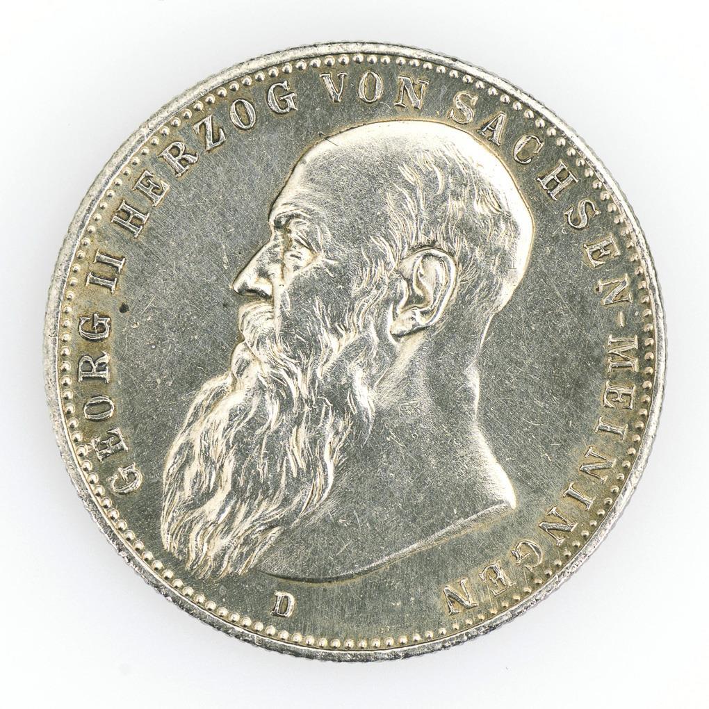 "Georg II Herzog von Sachsen-Meiningen", Bildnis mit Bart, nach links blickend. Zustand: vorzüglich-Stempelglanz.