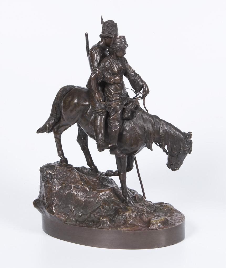 Bronze, dunkel patiniert. Kyrillisch signiert. Höhe: 31 cm.