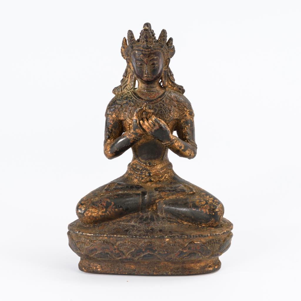 Bronze Buddha mit der Handhaltung 'Drehen des Rades'