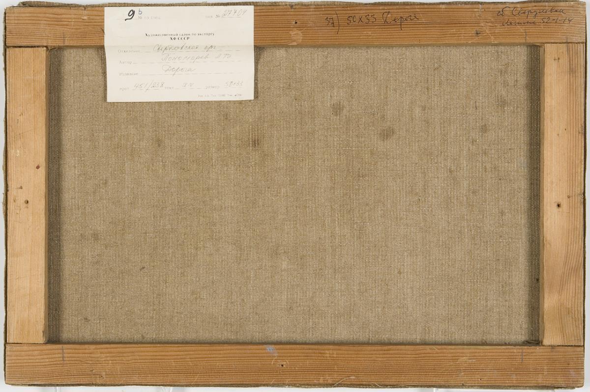 Rückseitig kyrillischer Ausstellungs-Klebezettel. Ohne Rahmen.