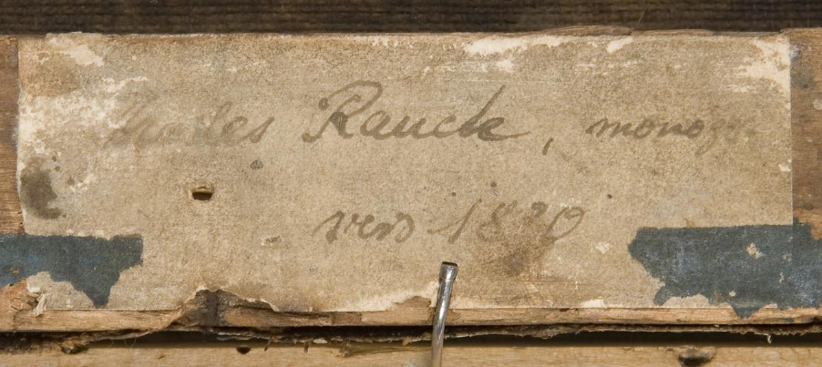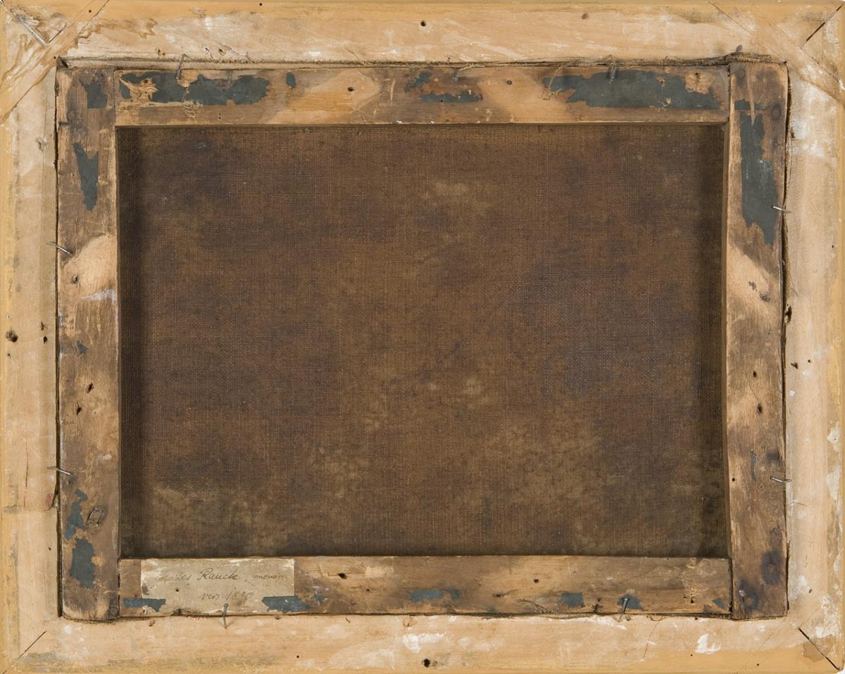 Rückseitig auf einem Klebezettel alt bezeichnet. Originaler Spannrahmen, vergoldeter Stuckrahmen.