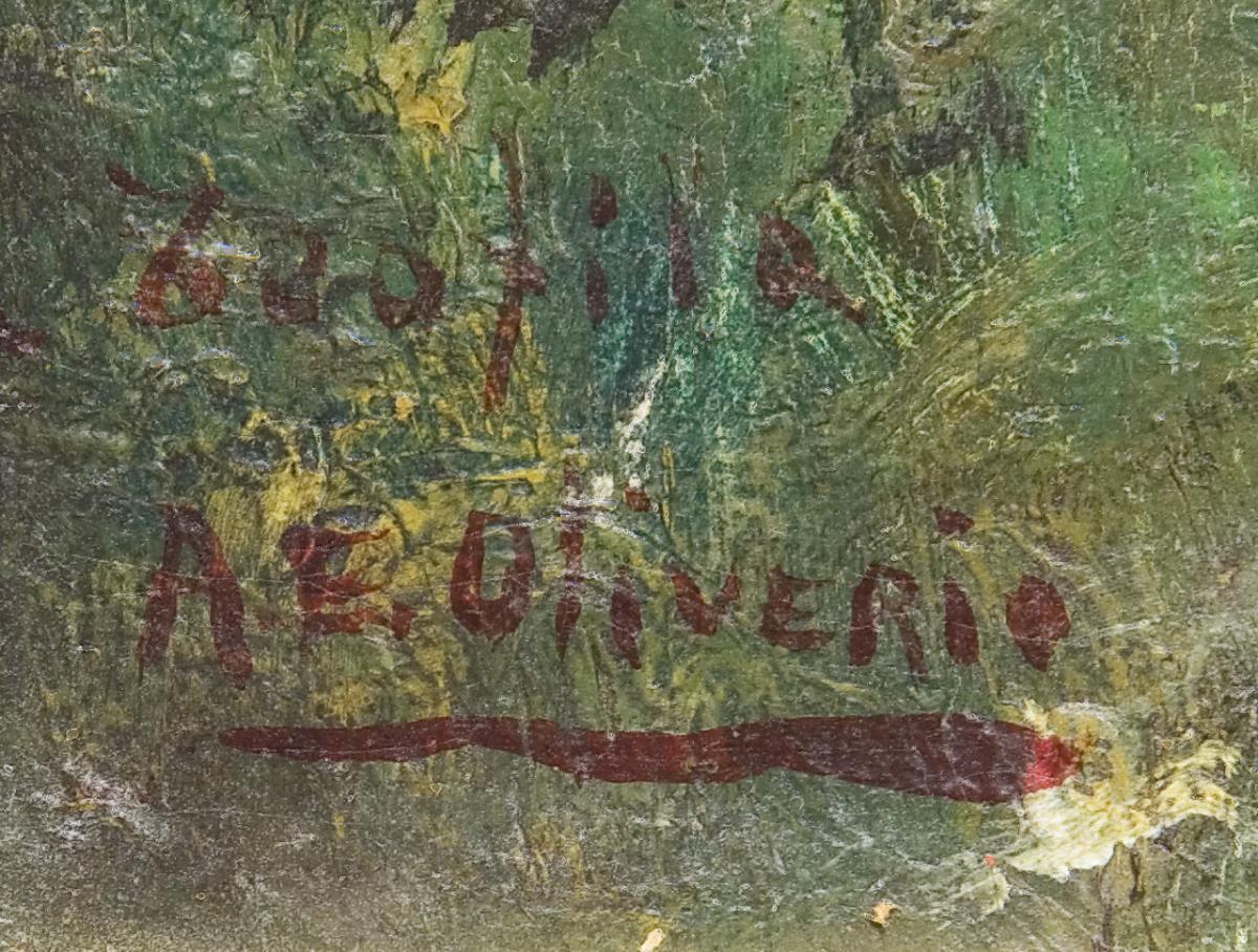 Öl auf Platte. Undeutlich signiert.