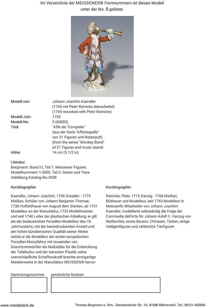 Figur der Affenkapelle: Affe als Trompeter. Meissen.