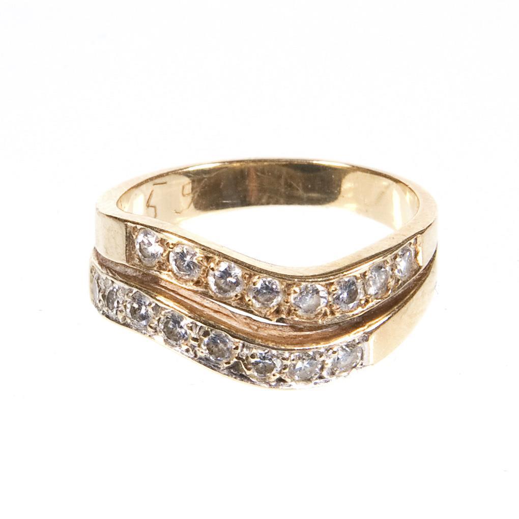 Klassisch-zeitlose Form mit stabiler voller Schiene. 16 Brillanten circa 0,4 ct. Punzen: Feingehalt.