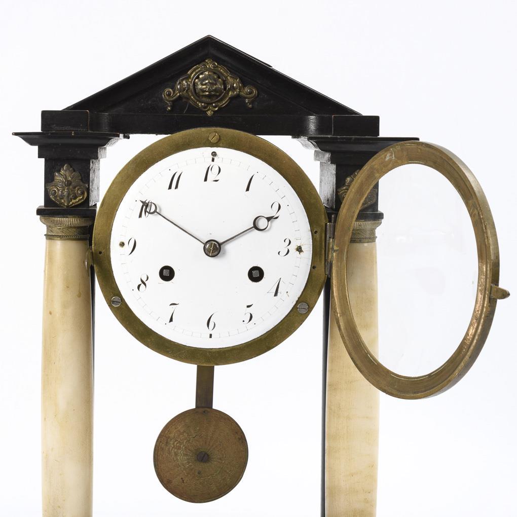 Kleine Portaluhr mit Alabastersäulen.