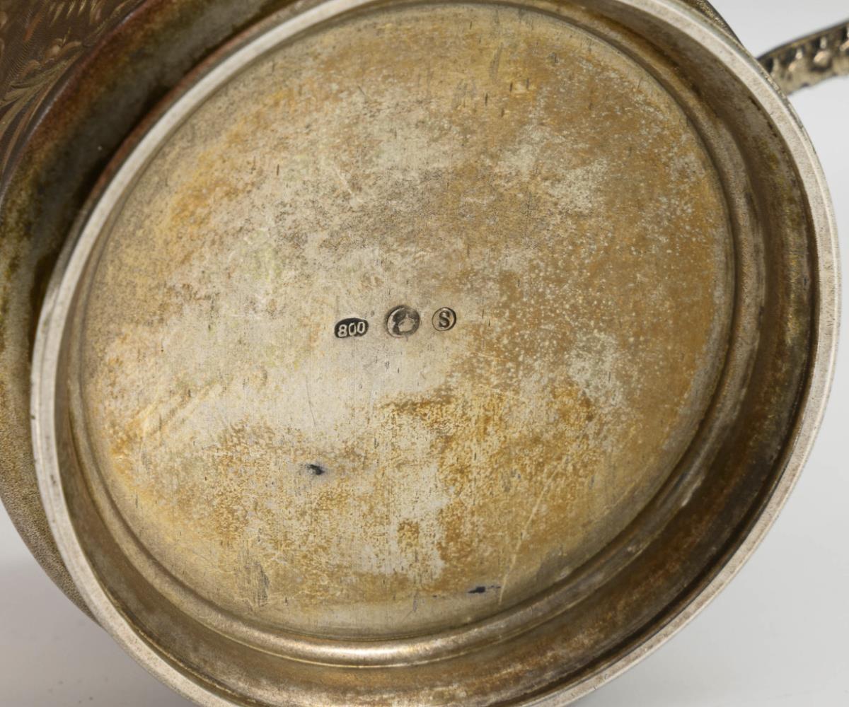 Silber und Metall. H 9,5-11 cm, L 14,5 cm. 282 g (7 Teile).