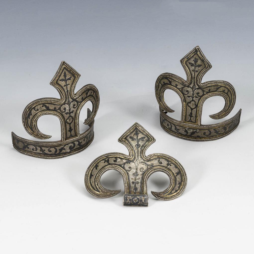 In Niello-Technik verzierte Schmuckelemente. 1x mit rückseitiger Gravur in arabischer Schrift. Leichte Altersspuren.