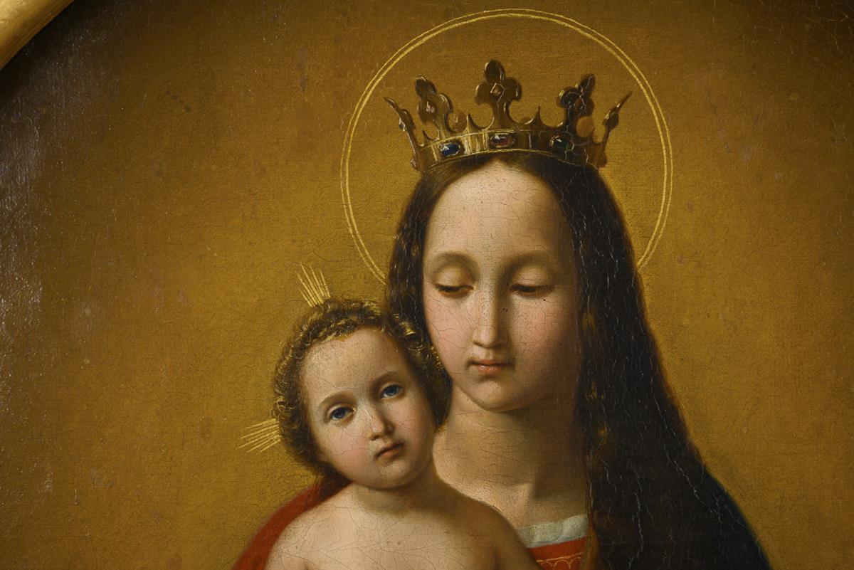 Mariendarstellung in geschnitztem Rahmen