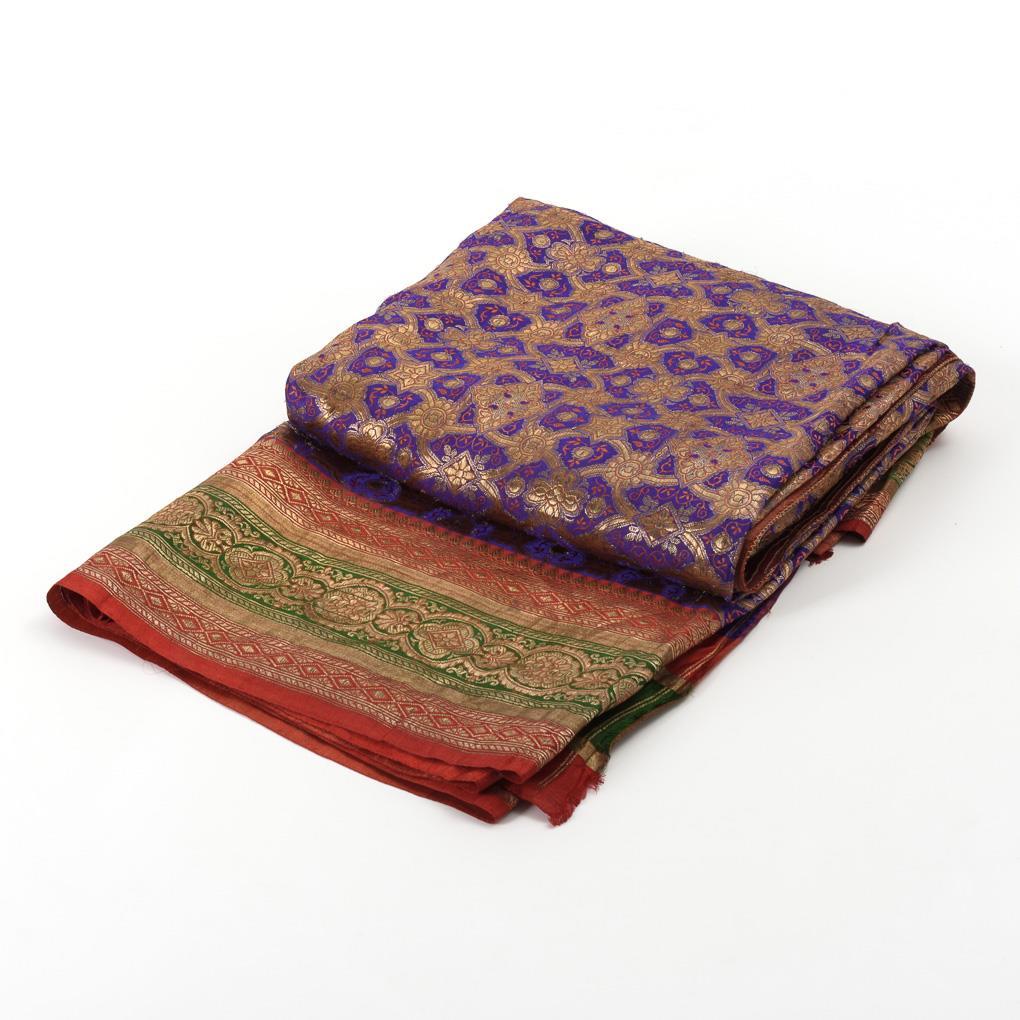 Rot-grün-violett-blauer Goldbrokat aus Seide. 480 x 110 cm.