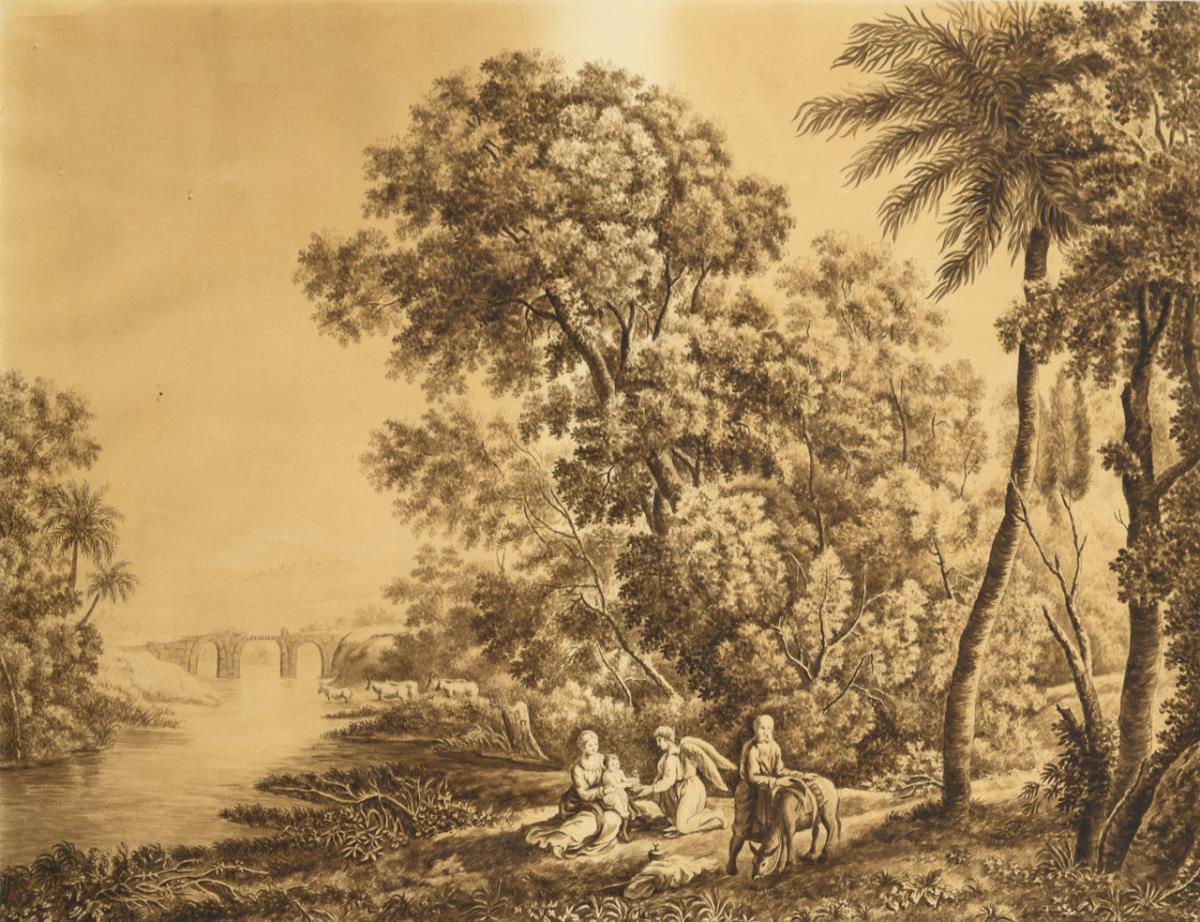 In Sepia aquarellierte Bleistiftzeichnung. 19. Jh. Wohl Wasserzeichen "Whatman 1813".