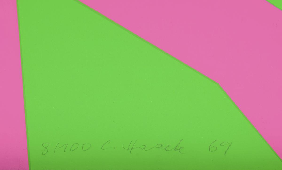 Konkretes Werk in Neongrün, Pink und Violett. Randbereich minimal bestoßen.