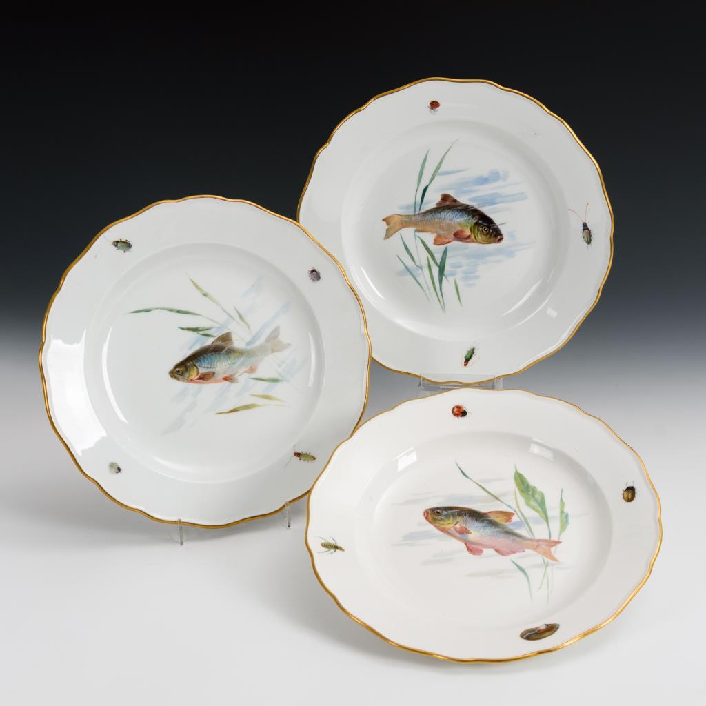 3 Jugendstil-Teller mit Fischmalerei