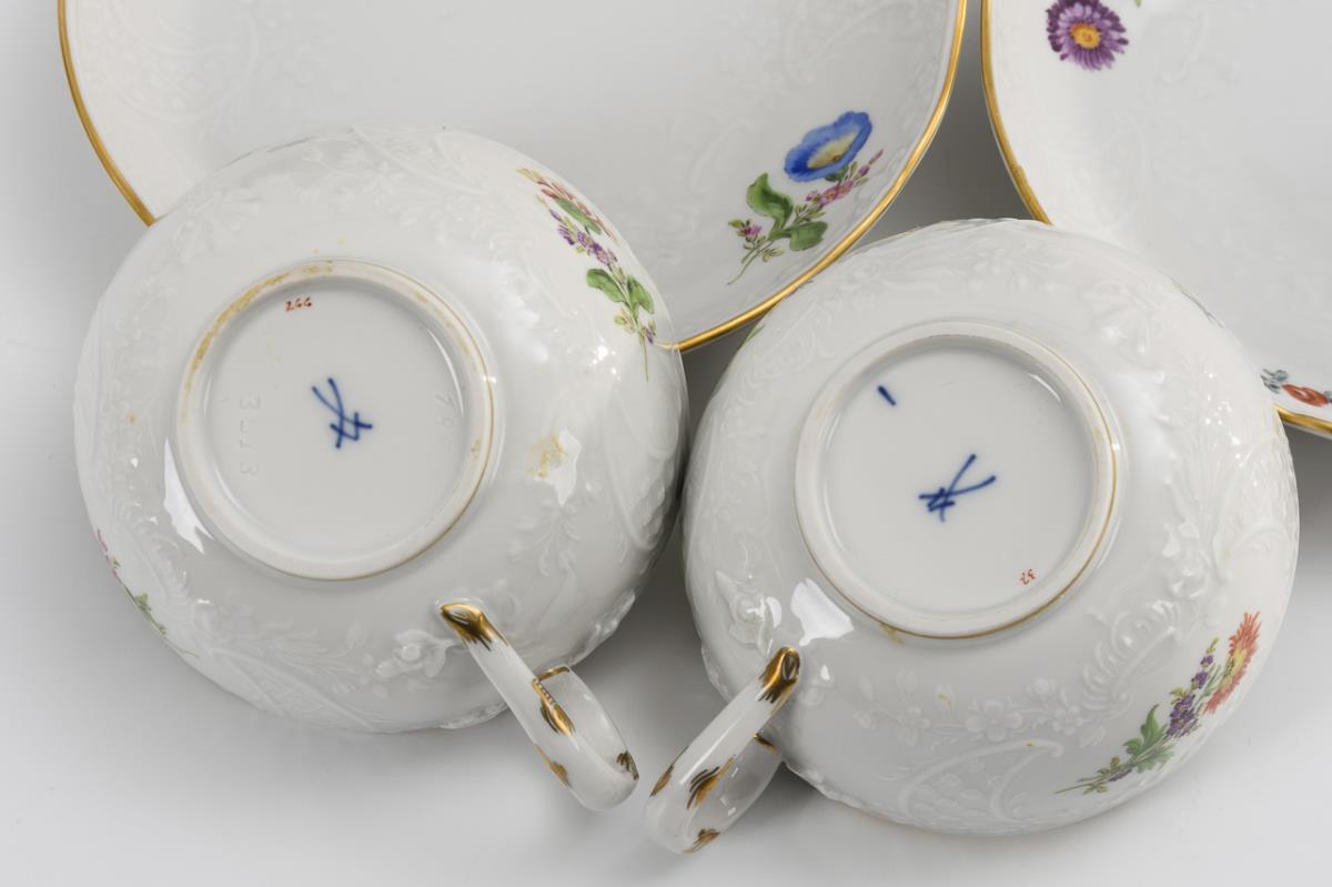4 Teetassen mit Blumenmalerei. Meissen.