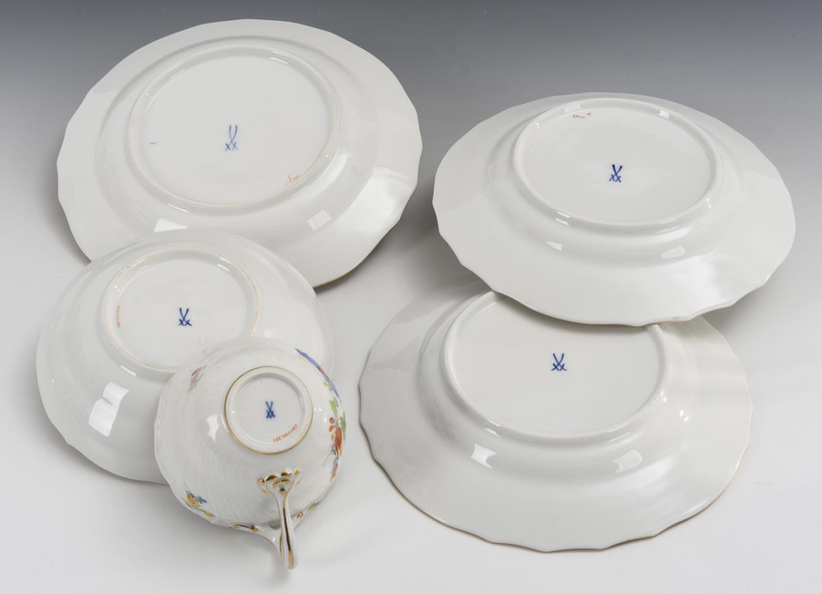 Gedeck und 5 Teller mit Blumenmalerei. Meissen.