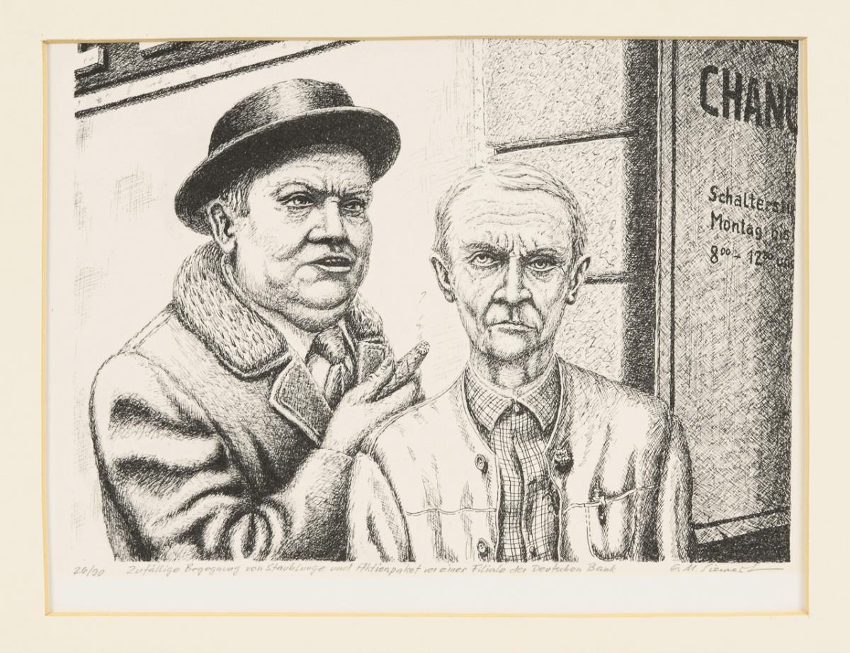 "Zufällige Begegnung von Staublunge und Aktienpaket vor einer Filiale der Deutschen Bank"