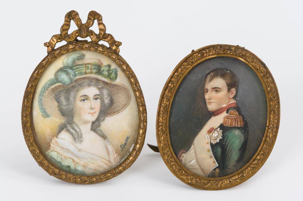Hüftbildnis von Napoleon bzw. Damenbildnis mit Hut. Einige Alters-/Gebrauchsspuren.