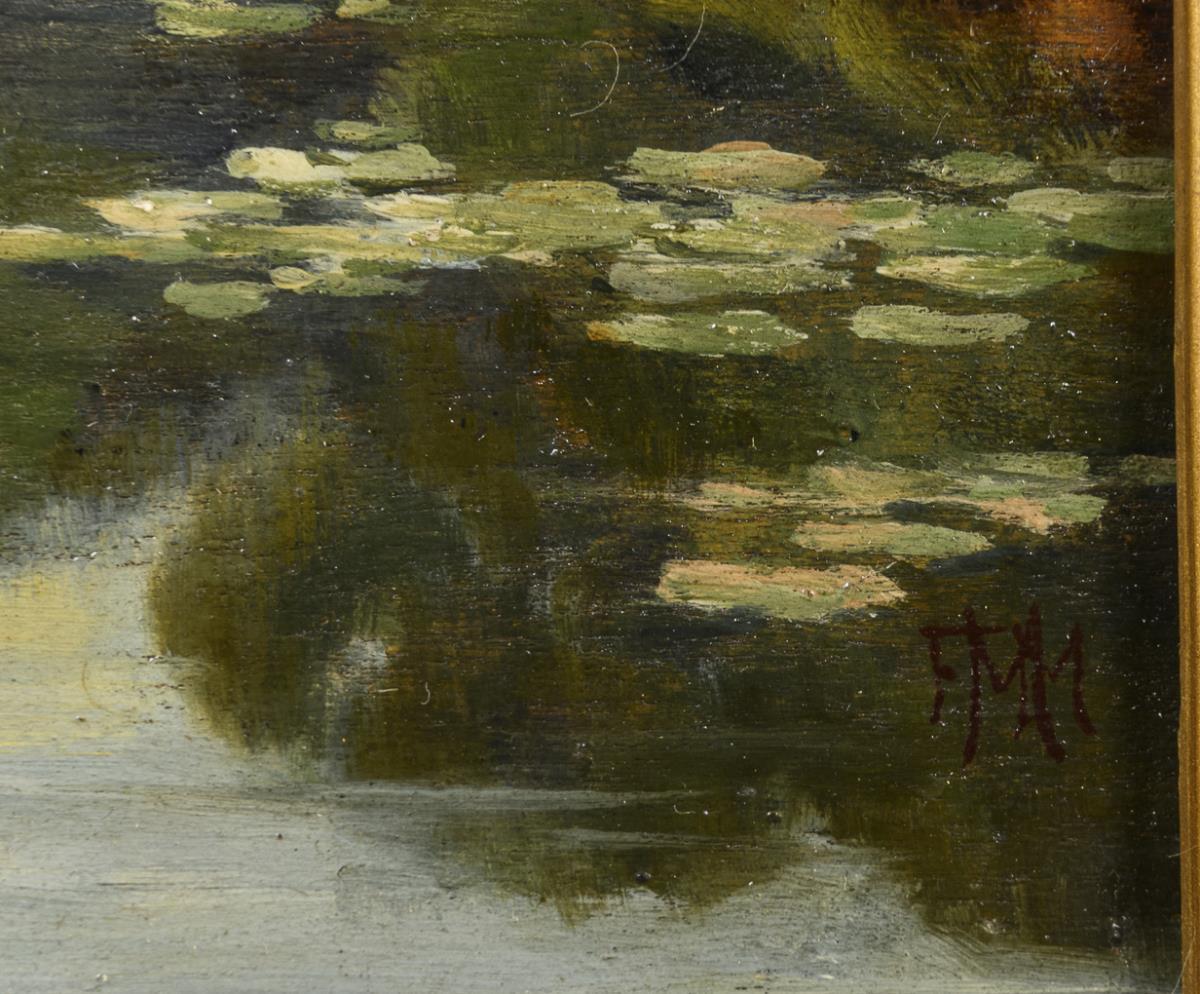 Öl/Holz. Rechts unten monogrammiert, verso bezeichnet.