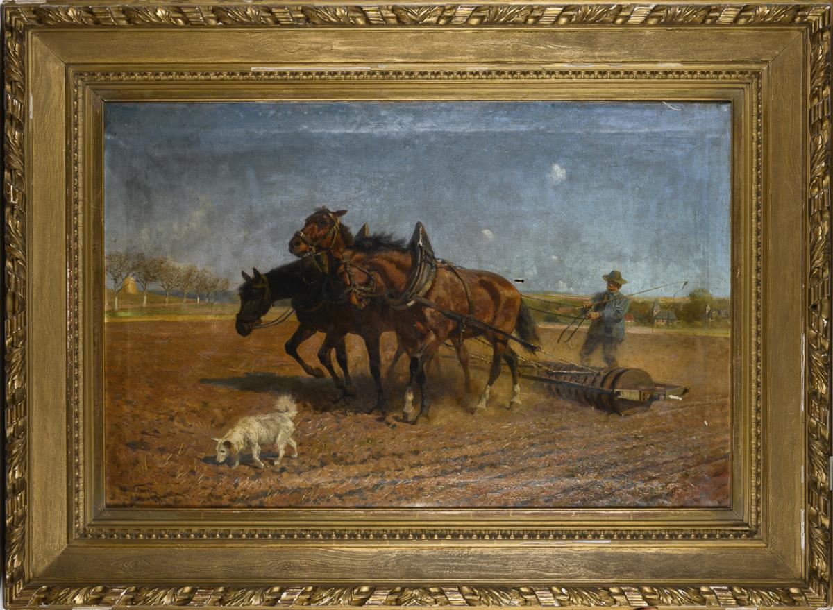 Pflügender Bauer mit Pferden