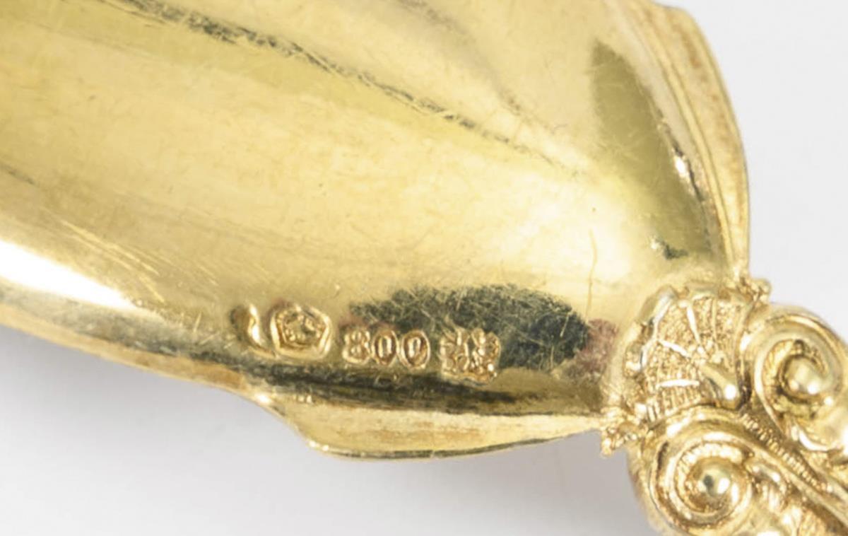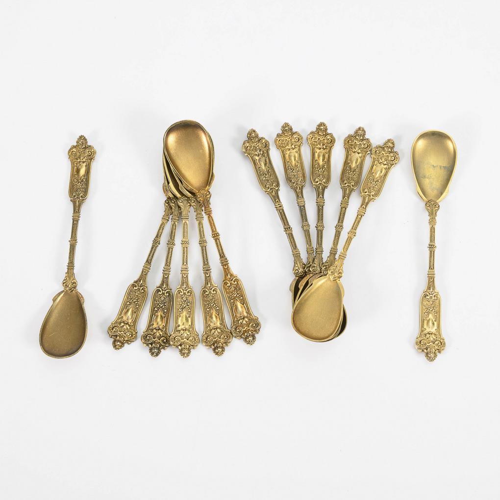 12 vergoldete Eislöffel im Originaletui. Bruckmann & Söhne, Heilbronn.