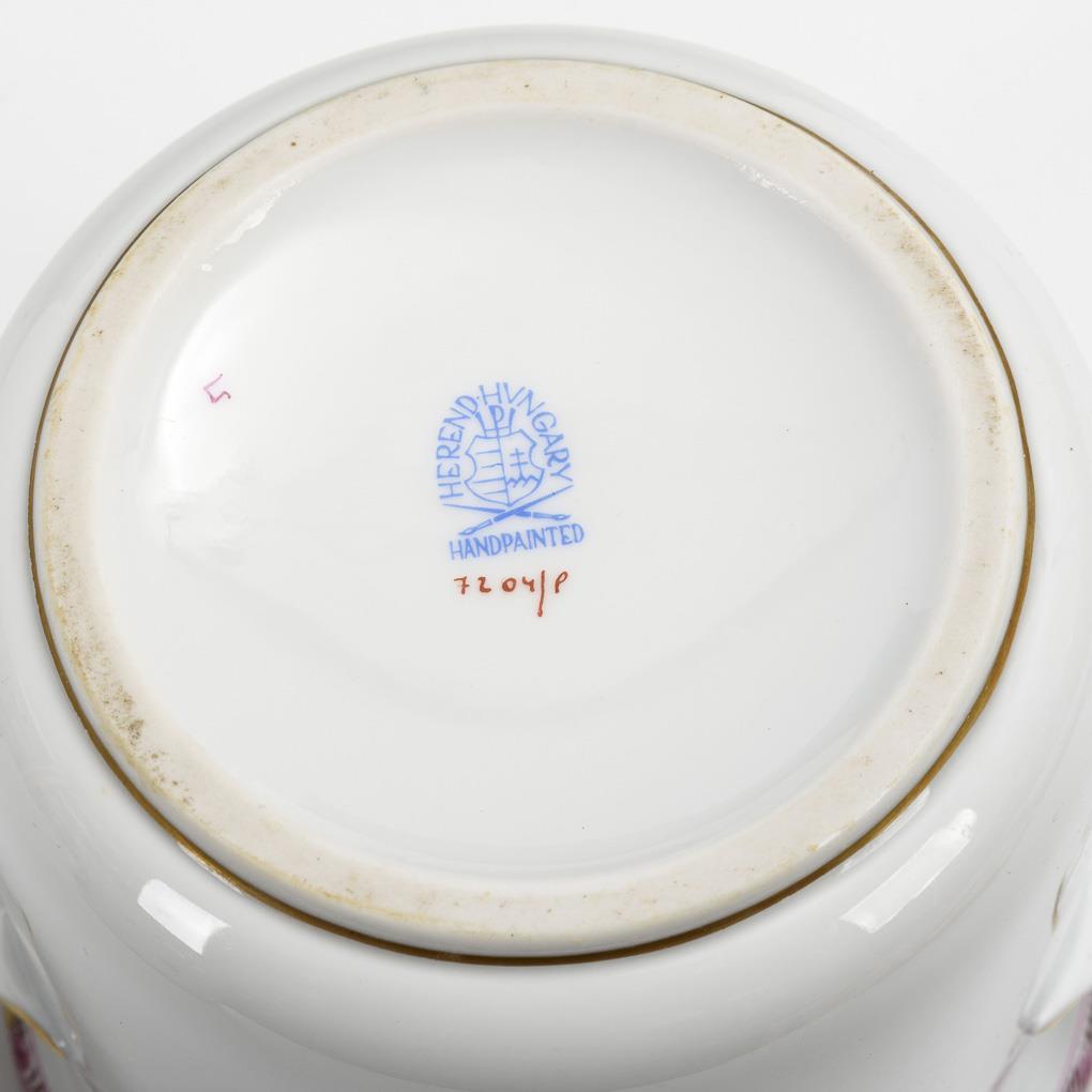 Purpurfarbenes Dekor, Goldstaffage. H 12,5 und 15 cm.