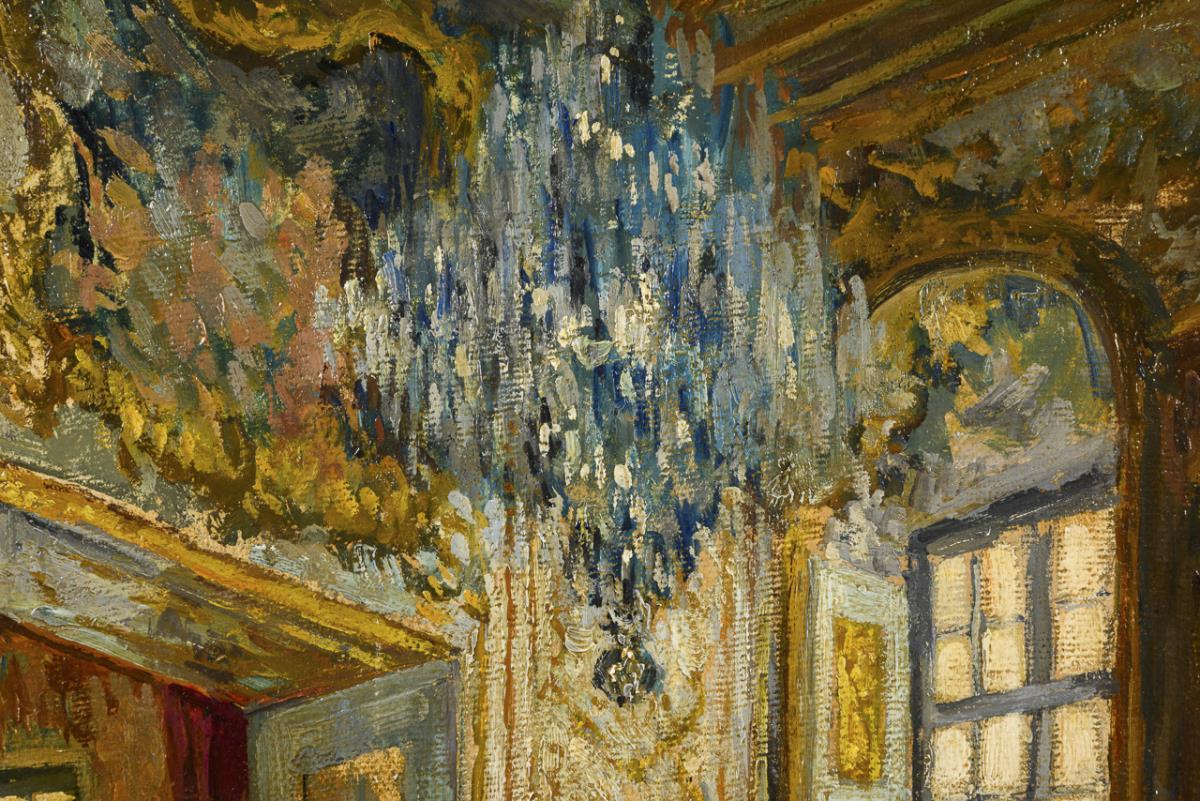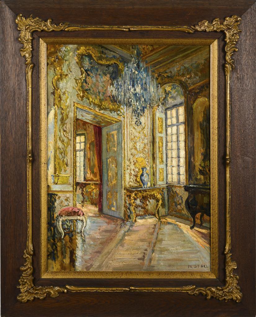 Herrschaftliches Rokoko-Interieur mit Kristallleuchter.