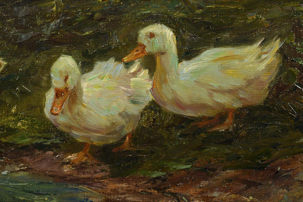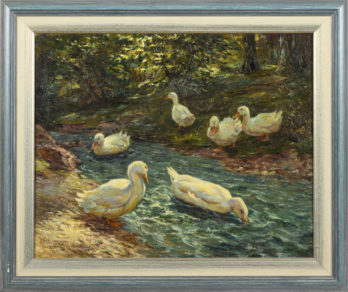 Die Tiere am Bach im Schatten der Bäume.