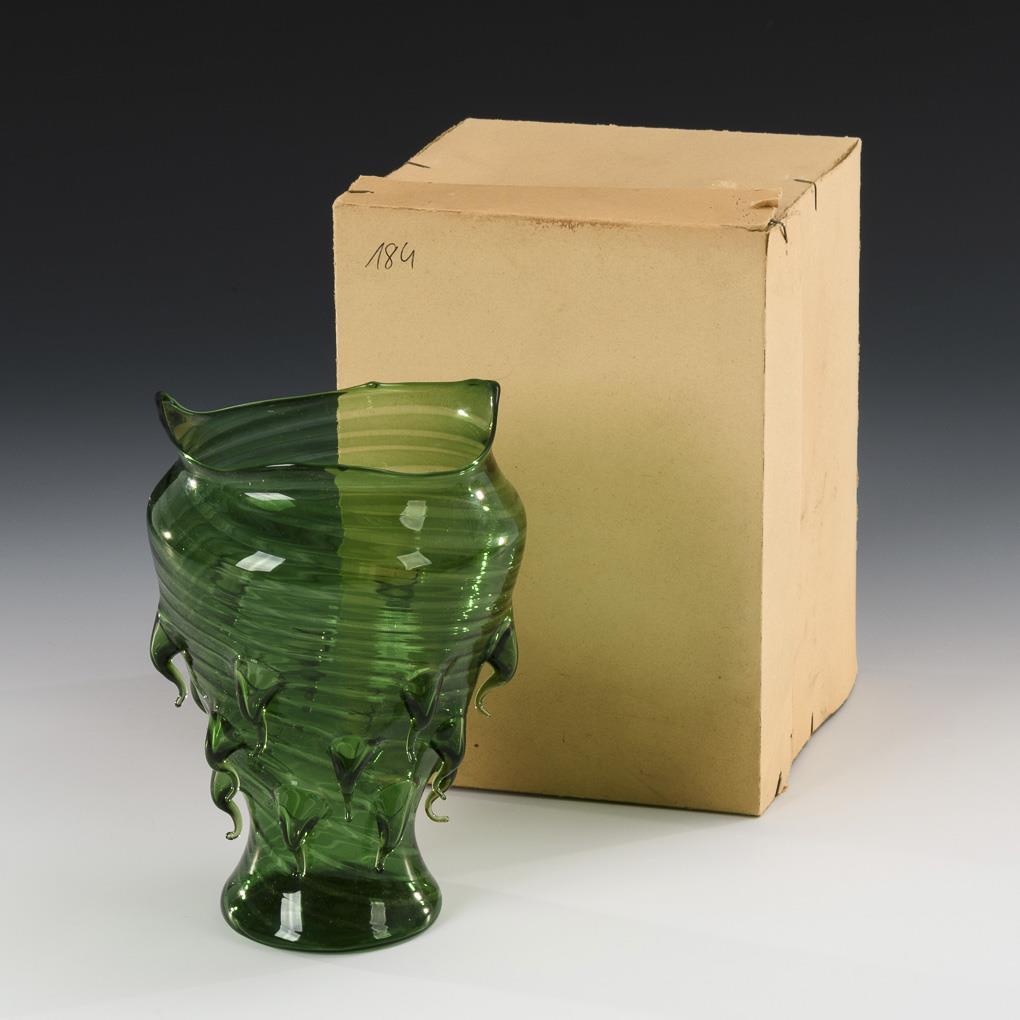 Montiertes und vor der Lampe geblasenes farbloses und grünes Glas. H 15,5 cm.